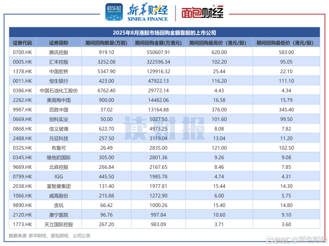 【读财报】港股8月回购透视:合计回购超114亿港元 恒生银行、信义玻璃等年内首度回购