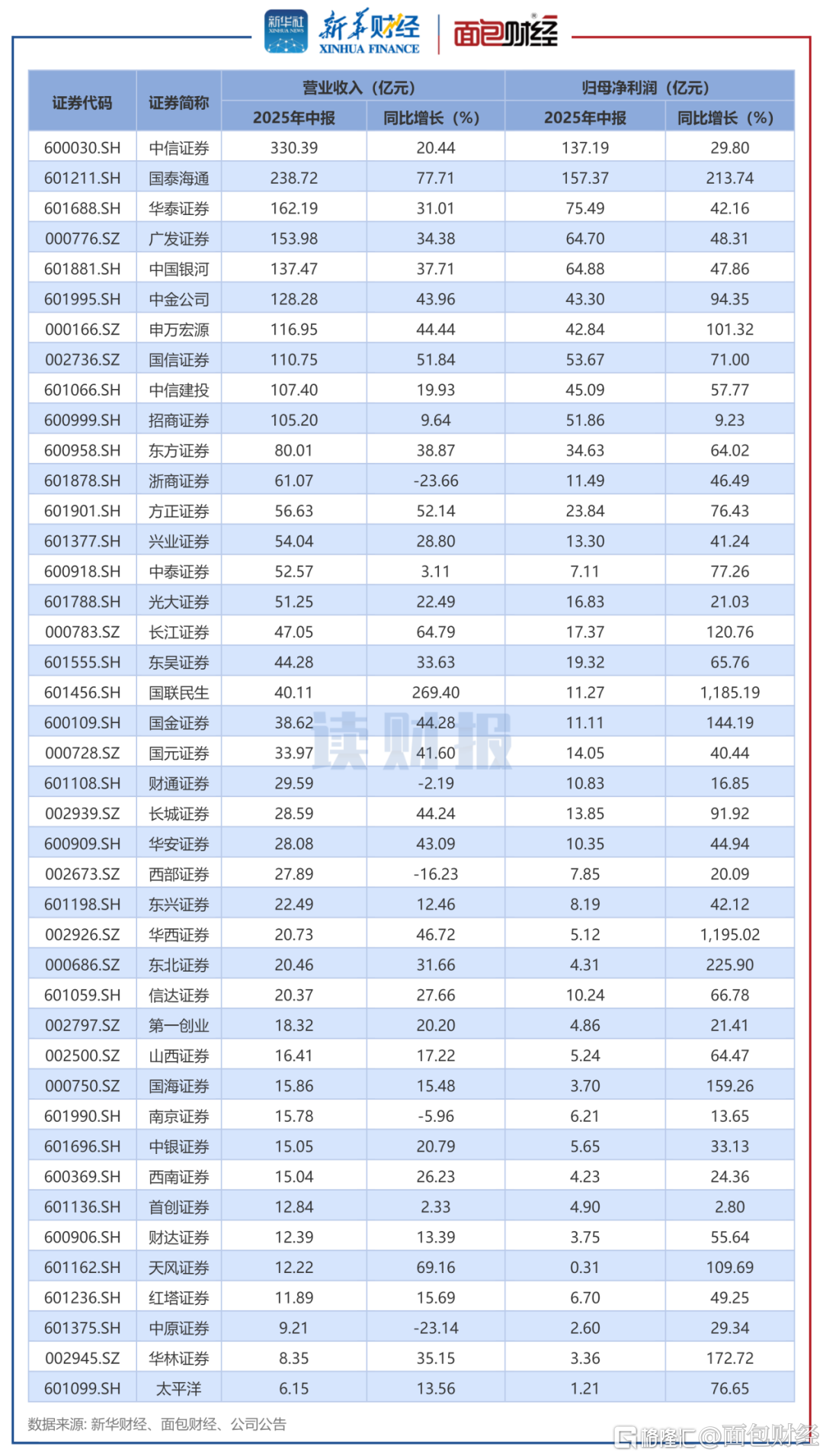 【读财报】上市券商业绩透视:2025上半年业绩显著回暖 合计归母净利润同比增逾六成