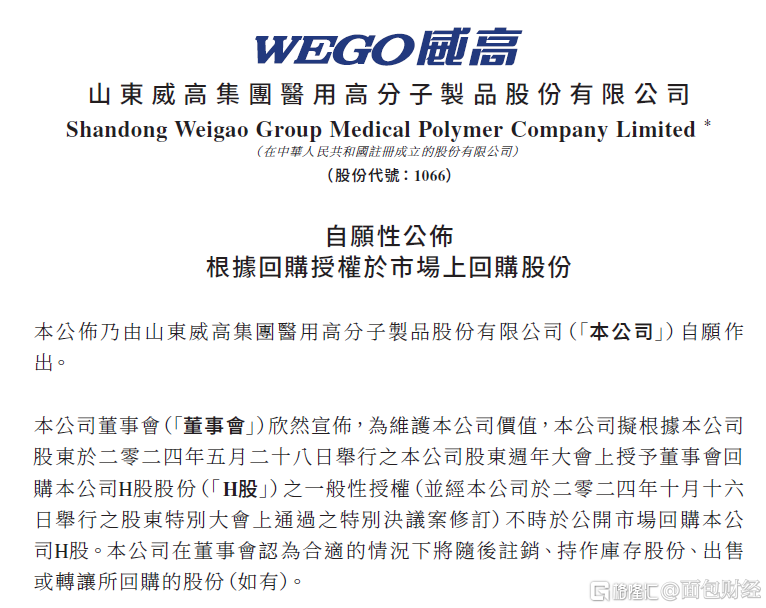 威高股份:年内耗资逾1.2亿港元回购,耗材龙头业绩何时企稳?