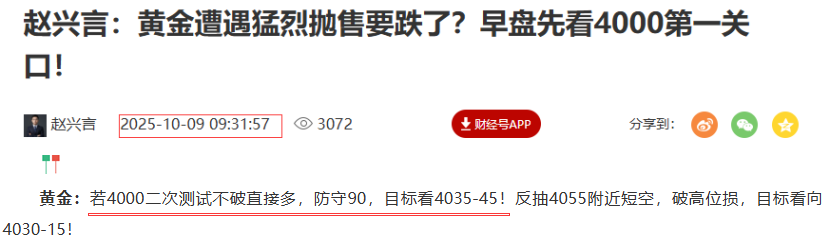 赵兴言:黄金遭遇猛烈抛售要跌了?早盘先看4000第一关口!