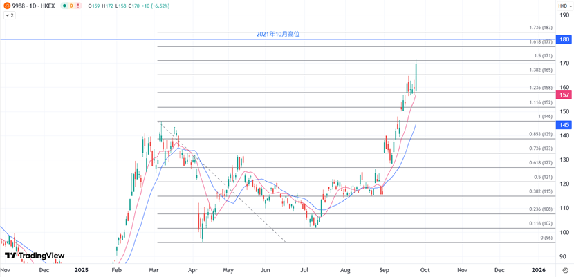 ATFX港股:AI热度继续加码,阿里巴巴股价直线拉升