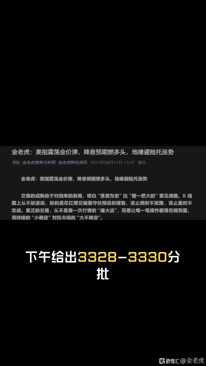 金老虎:今天下午给出的黄金3328多看3342,晚间到达