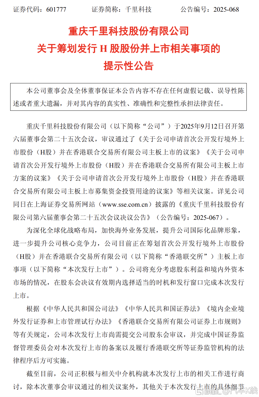 千里科技筹划H股上市,吉利又在下一盘大棋
