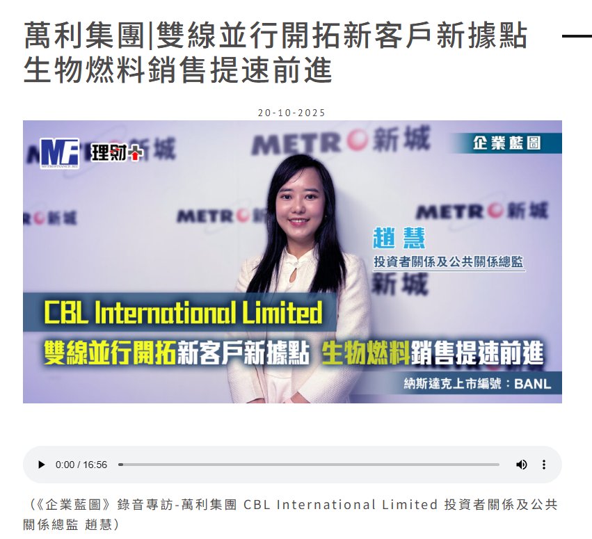 CBL International Limited发布2025年中期业绩 生物燃料增长强劲 净亏损减少及毛利率上升