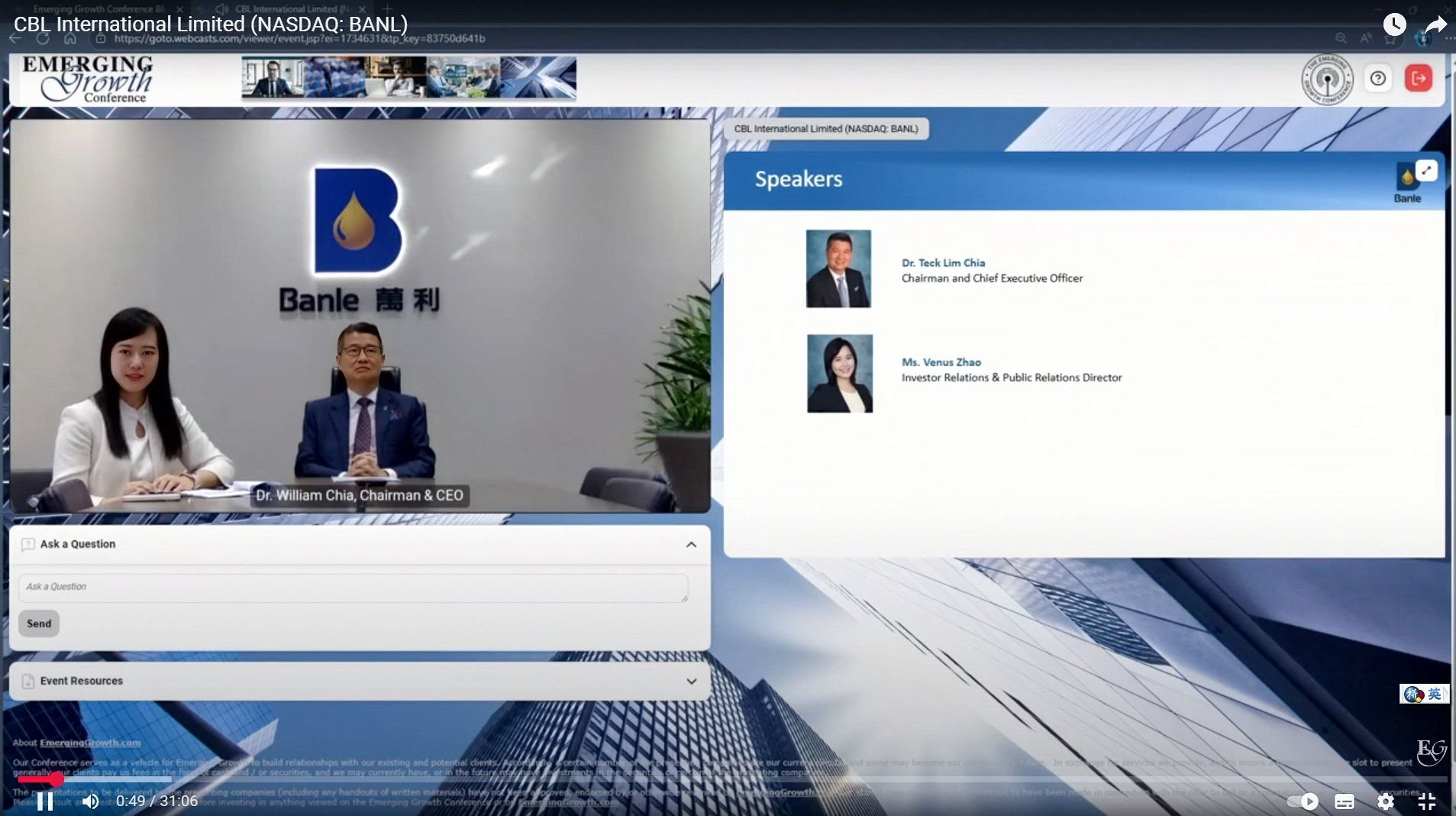 回顾:CBL International出席Noble Capital Markets新兴成长股权线上峰会