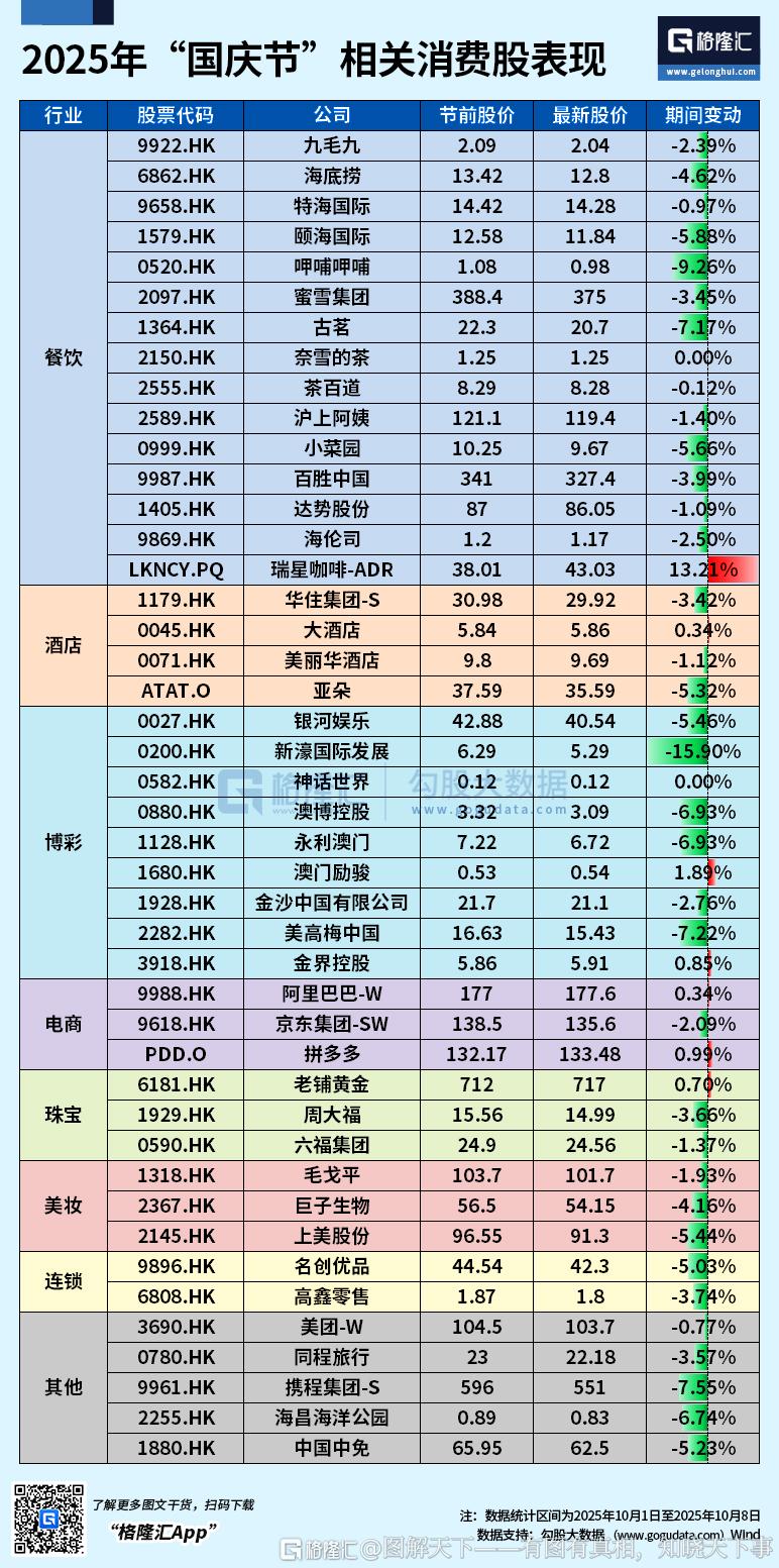 2025年“国庆节”相关消费股表现