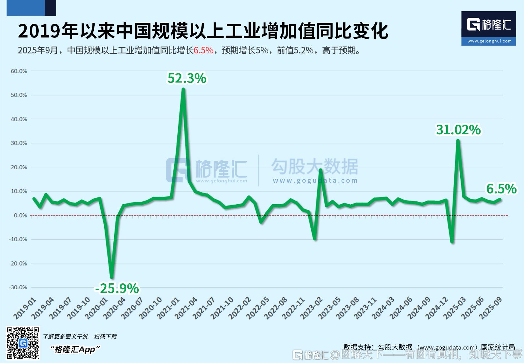 2019年以来中国规模以上工业增加值同比变化
