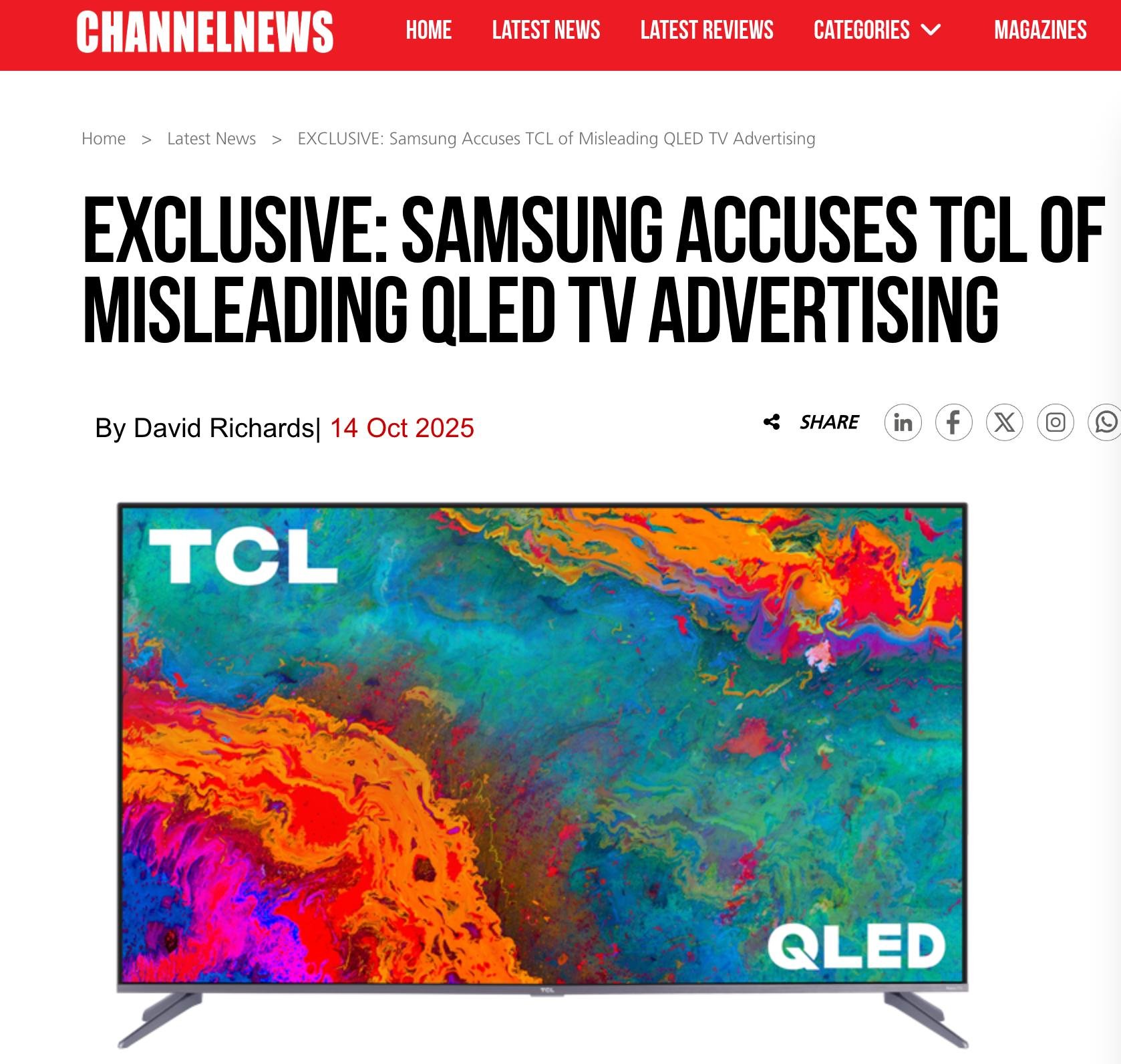 三星批TCL量子点误导用户 它忘记曾被英国批虚假宣传?