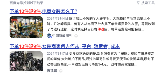比如有消费者表示:「网购三年,今年是退货最高的一年,以前是偶尔退一两件,现在是买十件退十件」「我以前真不怎么退,今年买十件退八件」