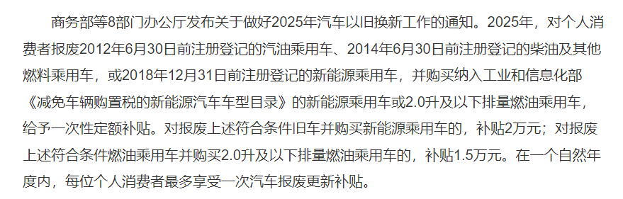 除了这些,周末还出来汽车以旧换新利好,详情看下图: