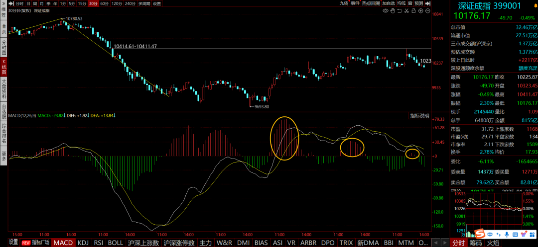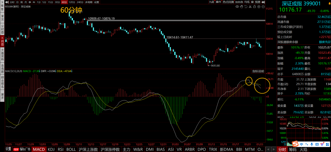 如上图深证指数这种黄白线,就要注意短线60分还有回调!