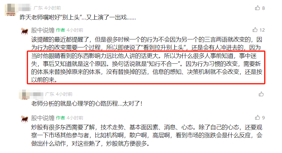 其实不是知不知道答案的问题,而是行为模式和思维模式没有改变的问题。今天午盘号的留言就揭示了这个真相: