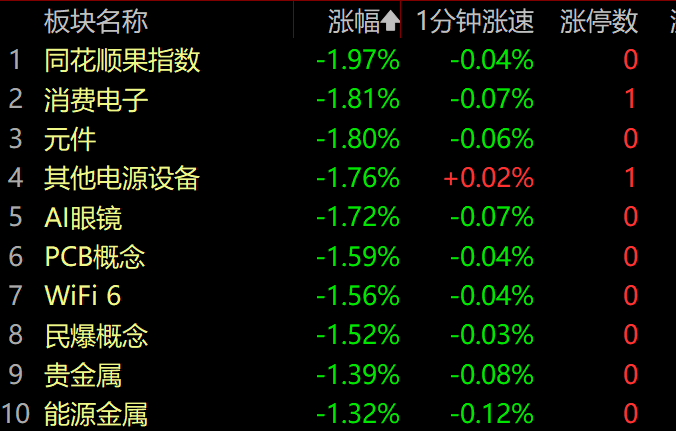 领跌的则是消费电子、Ai眼镜、元件、PCB、芯片半导体等板块,昨天的文章就提示过科技股周四要注意筑顶回调!今天中午一片大红的时候就再一次提醒过这些板块要回调!没走那就没什么好说的了!