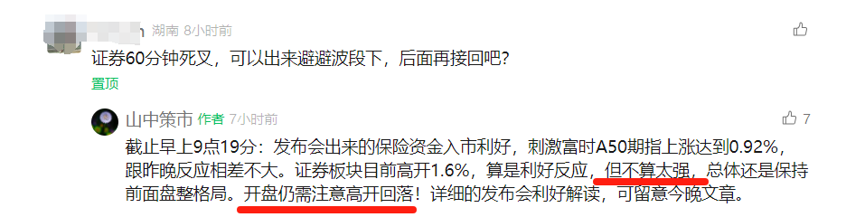 而且今天早上开盘前也在文章置顶留言提示虽然是利好,但不算太强,开盘还要注意高开回落!