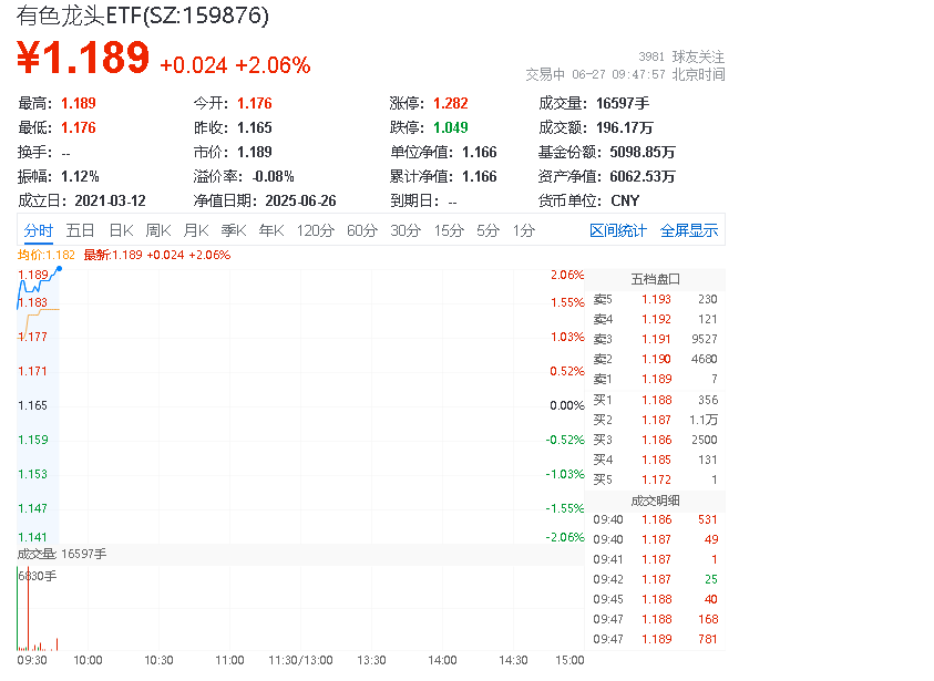 有色龙头ETF(159876)拉升2.06%,中孚实业领涨8.58%,多金属品种被看好后市表现