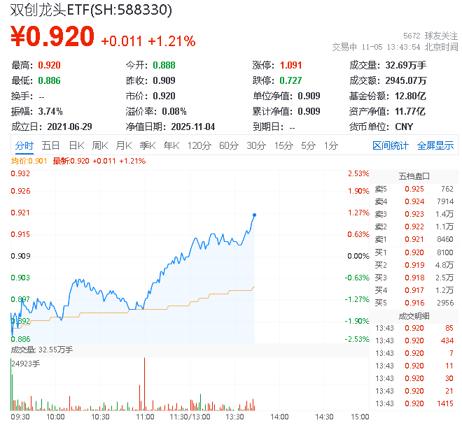 双创龙头ETF(588330)拉升1.1% 阿特斯领涨20% 布局科技创新利器覆盖细分赛道龙头