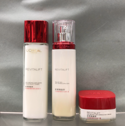 ·欧莱雅复颜视黄醇水乳霜套装:温和抗老,淡化细纹,滋润保湿,适合抗初老人群日常使用。