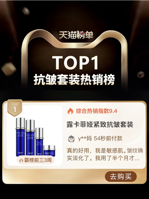 ·露卡菲娅紧致抗皱套装:多效协同,淡化纹路,提升紧致度,为肌肤注入抗老能量,重塑年轻轮廓。