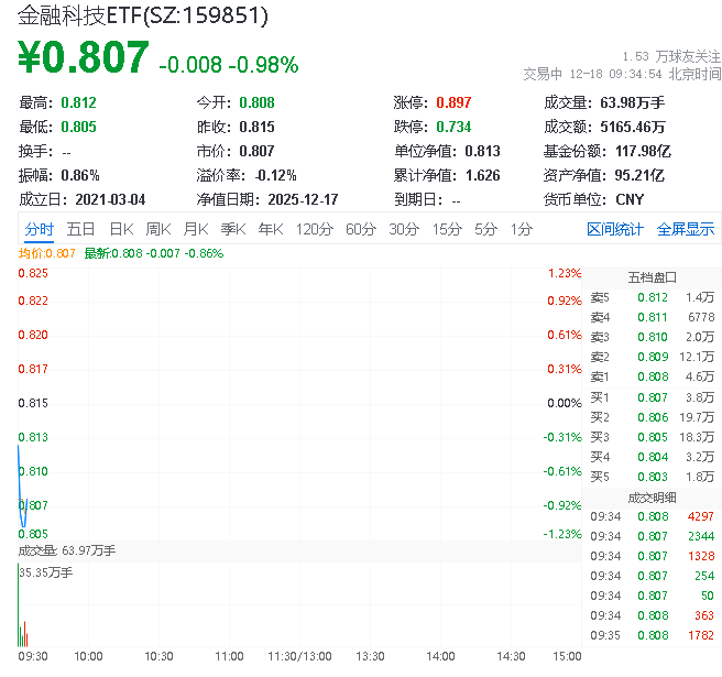 金融科技ETF(159851)下行1.23% 电科数字领涨1.49% AI时代超级OS入口争夺加剧 招商证券建议左侧布局