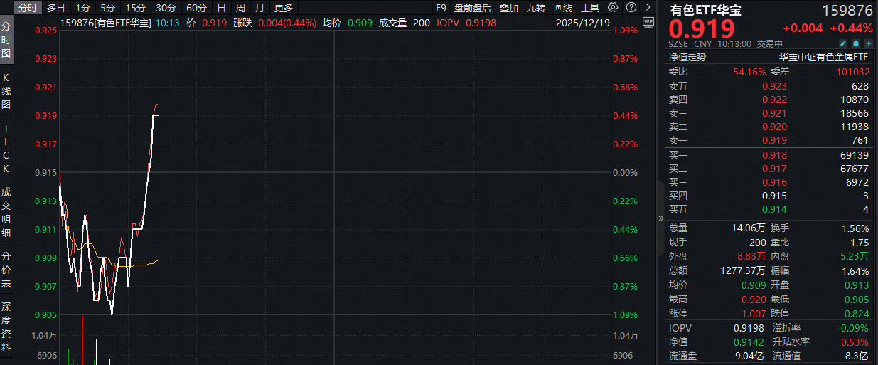 商务部表态!稀土出口破冰!北方稀土涨超1%,有色ETF华宝(159876)早盘拉升翻红!