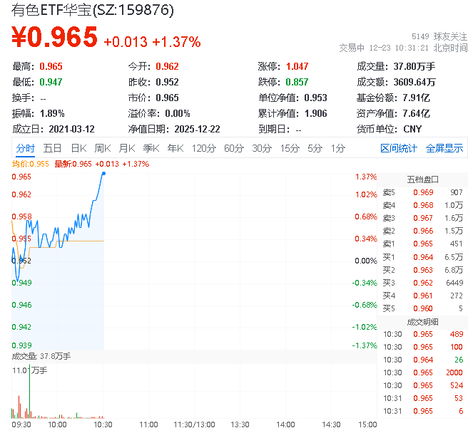有色ETF华宝(159876)上涨1.26% 博威合金领涨7% 黄金铜铝迎来战略性配置机遇