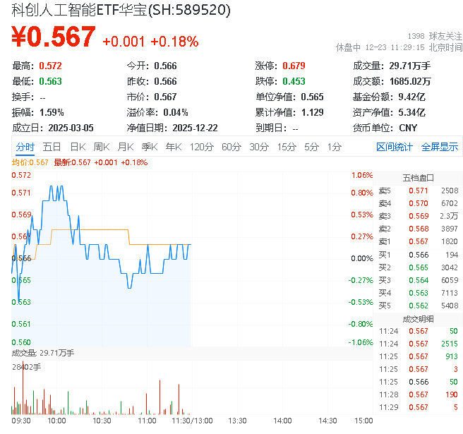 科创人工智能ETF华宝(589520)上涨0.18% 星环科技领涨4.89% 光纤光缆行业迎AI发展新机遇