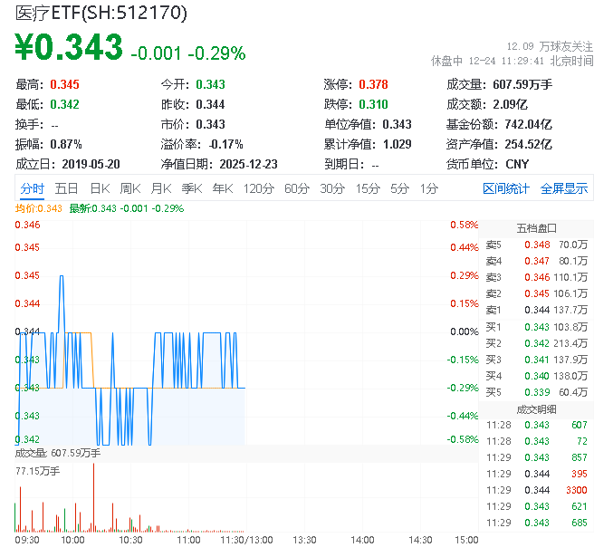 医疗ETF(512170)弱势震荡0.3%,泰格医药领涨4.1%,全球药品支出2026年将稳健增长