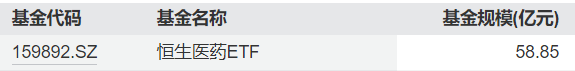 恒生医药规模122亿,其中恒生医药ETF(159892)规模就达58亿。
