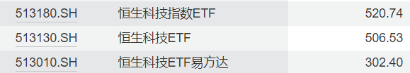 恒生科技的“三巨头”:恒生科技指数ETF(513180)规模520亿、恒生科技ETF(513130)506亿、恒生科技ETF易方达(513010)302亿。