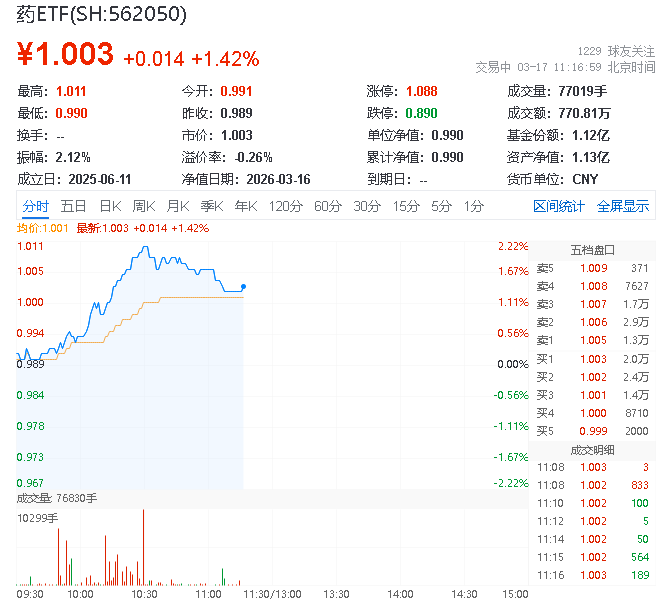 药ETF场内涨1.82%三生国健领涨8%,创新药+中药双轮驱动吸引布局