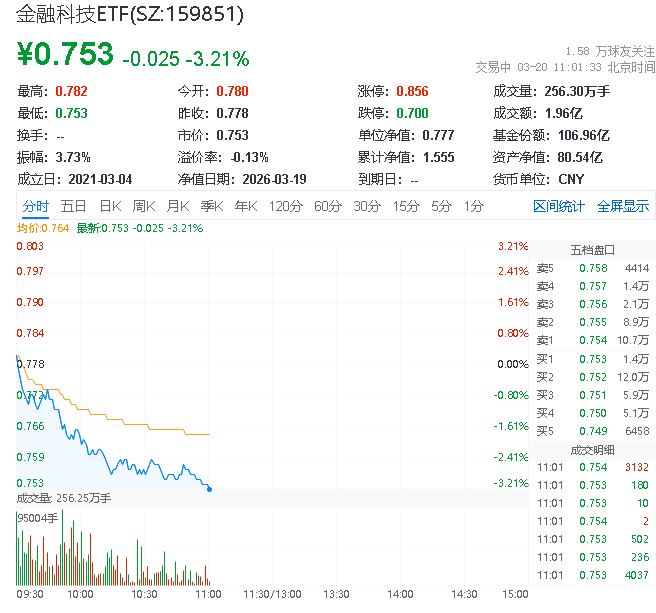 金融科技ETF场内跌逾3% 古鳌科技领跌超11% 政策技术共振重塑核心增长逻辑