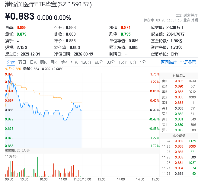 华宝基金港股通医疗ETF(159137)走低,春立医疗领涨1.94%,脑机接口技术及眼健康技术创新持续释放行业成长潜力。