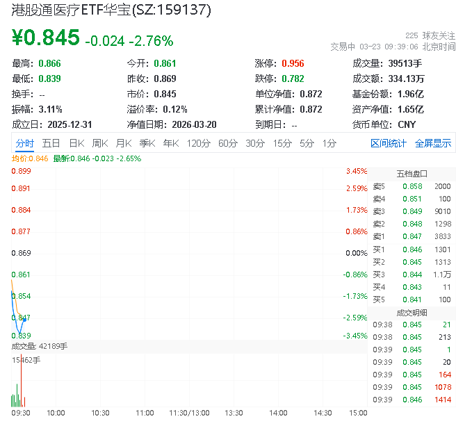 港股通医疗ETF华宝(159137)跌2.65%,微创机器人-B领跌,药监局聚焦源头创新支持医药产业发展