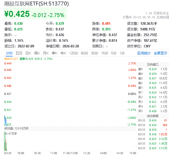 华宝基金港股互联网ETF加速下挫2.52% 汇量科技领跌5.28% AIGC视频模型有望撬动数百亿创意市场
