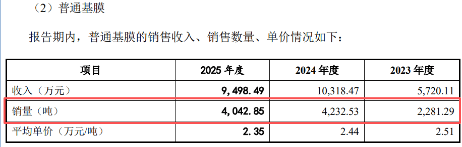 其中,高温基膜在报告期各期的销量为5347.96吨、1.04万吨和1.27万吨,2024年,高温基膜的销量同比上升93.87%,也带动了当期营收的增长。
