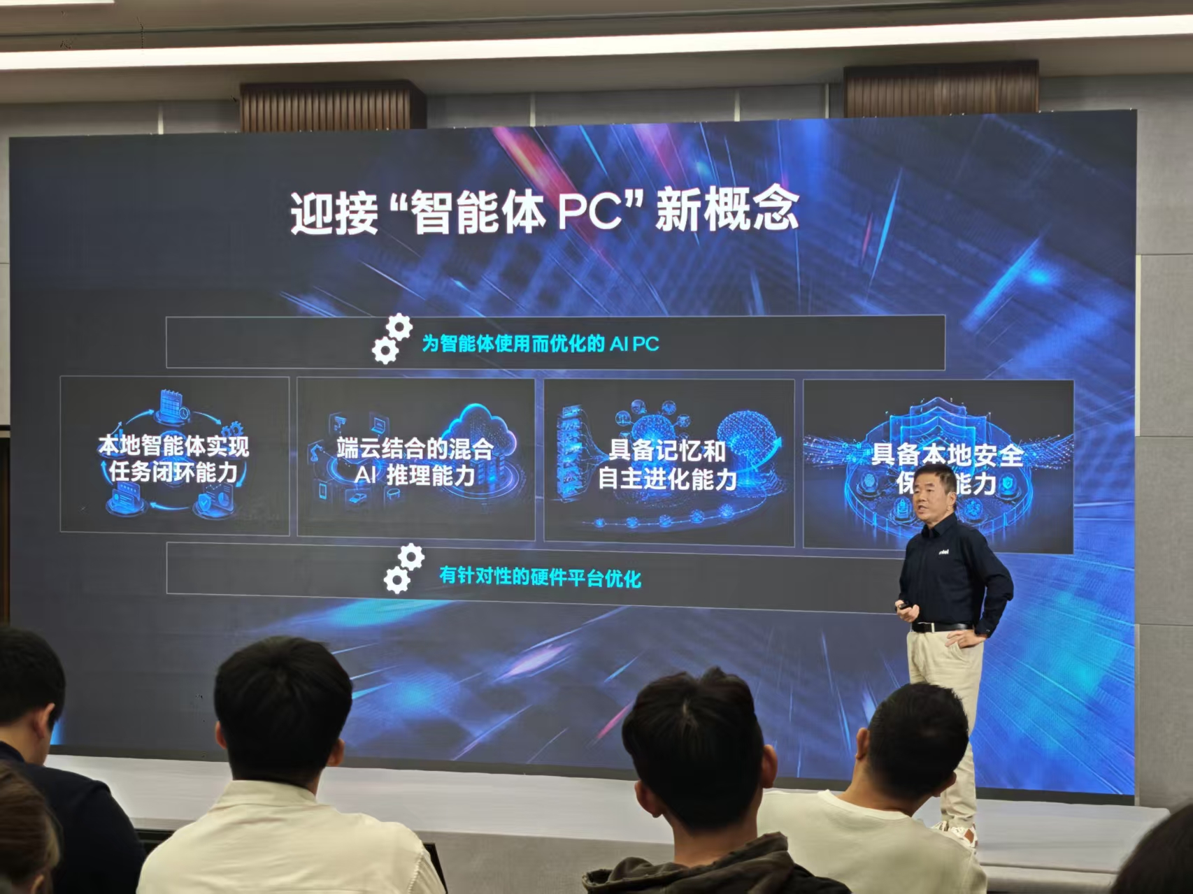 英特尔在今天的分享会上提出了名为“智能体PC”的新概念,具体来说,就是内置或深度集成AI智能体的个人电脑,特别是搭载了第三代酷睿处理器的产品,主打端云协同和闲时功耗控制。