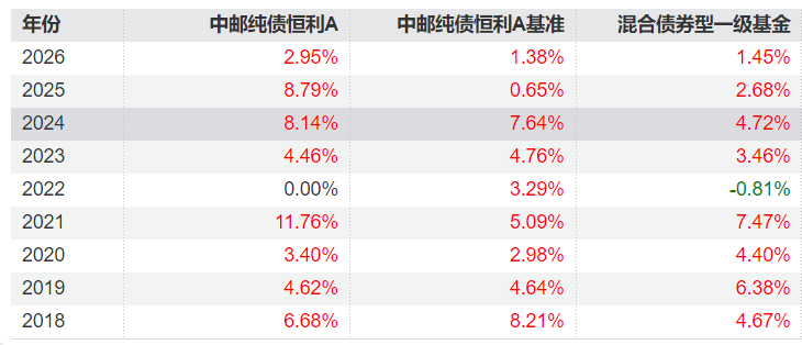 中邮纯债恒利业绩: