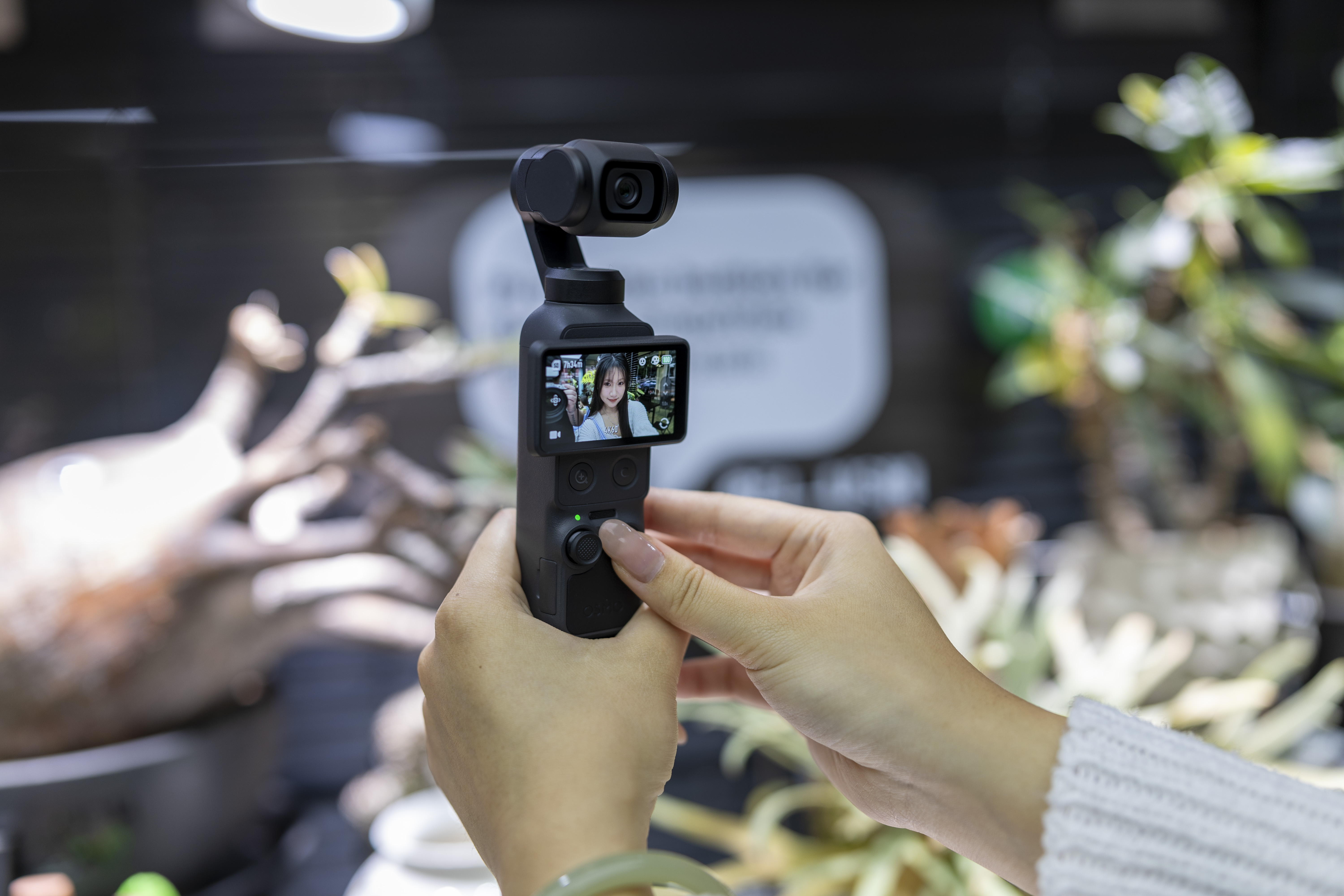 第二个难点,是如何跟随主体。Pocket 4 此次配备了进阶版智能跟随功能,这就如同为你配备了一位经验丰富的专属跟拍摄影师,无论你是快步走动、突然转身,还是随性地手舞足蹈,镜头都会平滑、精准地转动,始终将你稳稳锁定在画面的黄金比例位置。配合极其灵敏的人脸/眼部优先对焦系统,你再也不用担心背景清晰而人脸模糊的废片出现,完全免去了反复确认监视器的焦虑。