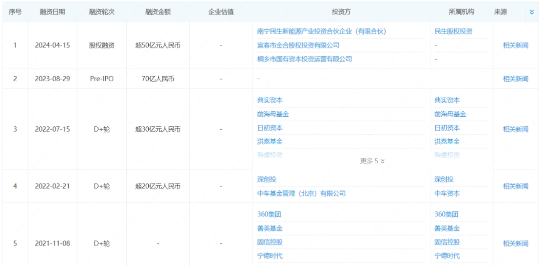 据工商信息平台“企查查”数据显示,截至目前,合众汽车已获股权融资11轮,累计融资额超过220亿元,投资方包括深创投、中车资本、宁德时代、360公司等。