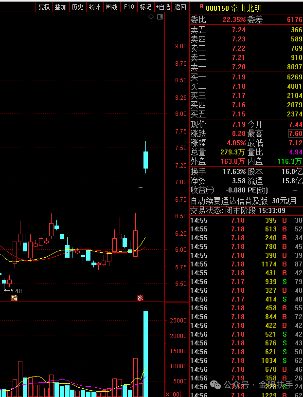 买入前5的营业部买入额(万)卖出额(万)净额(万)华泰证券上海武定路3461.503760.05-298.55东方财富证券拉萨团结路第二3293.142140.991152.15东方财富证券拉萨金融城南环路3079.122750.01329.11东方财富证券拉萨团结路第一3010.522597.03413.49东方财富证券拉萨东环路第二2852.261923.88928.38卖出前5的营业部买入额(万)卖出额(万)净额(万)深股通专用1954.524354.52-2400.00华泰证券上海武定路3461.503760.05-298.55中国中金财富证券上海黄浦区中山东二路2622.042988.90-366.87东方财富证券拉萨金融城南环路3079.122750.01329.11东方财富证券拉萨团结路第一3010.522597.03413.49常山北明周一跳空高开之后,十字星巨量分歧这个位置就看第2天板块龙头是否能够继续超预期,如果超预期的话还能把它带起来。如果巨量分歧的话,这个小心后排龙头就要开始回踩了,因为部分资金止盈之后就去抱团龙头了。那他历史股性还是非常不错的呢,这可以当板块内的强势股去关注,毕竟不是所有人都喜欢追连板的。后期这个板块我估计应该能走出像样的趋势性行情